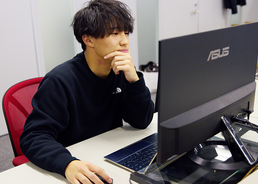 中学の頃からこのIT業界に興味を持っていたので、将来自分も絶対にこの業界に携わりたいという思いから専門学校に入り、3年生のときに1ヶ月間インターンシップの体験をさせていただいたのがこの会社でした。<br />